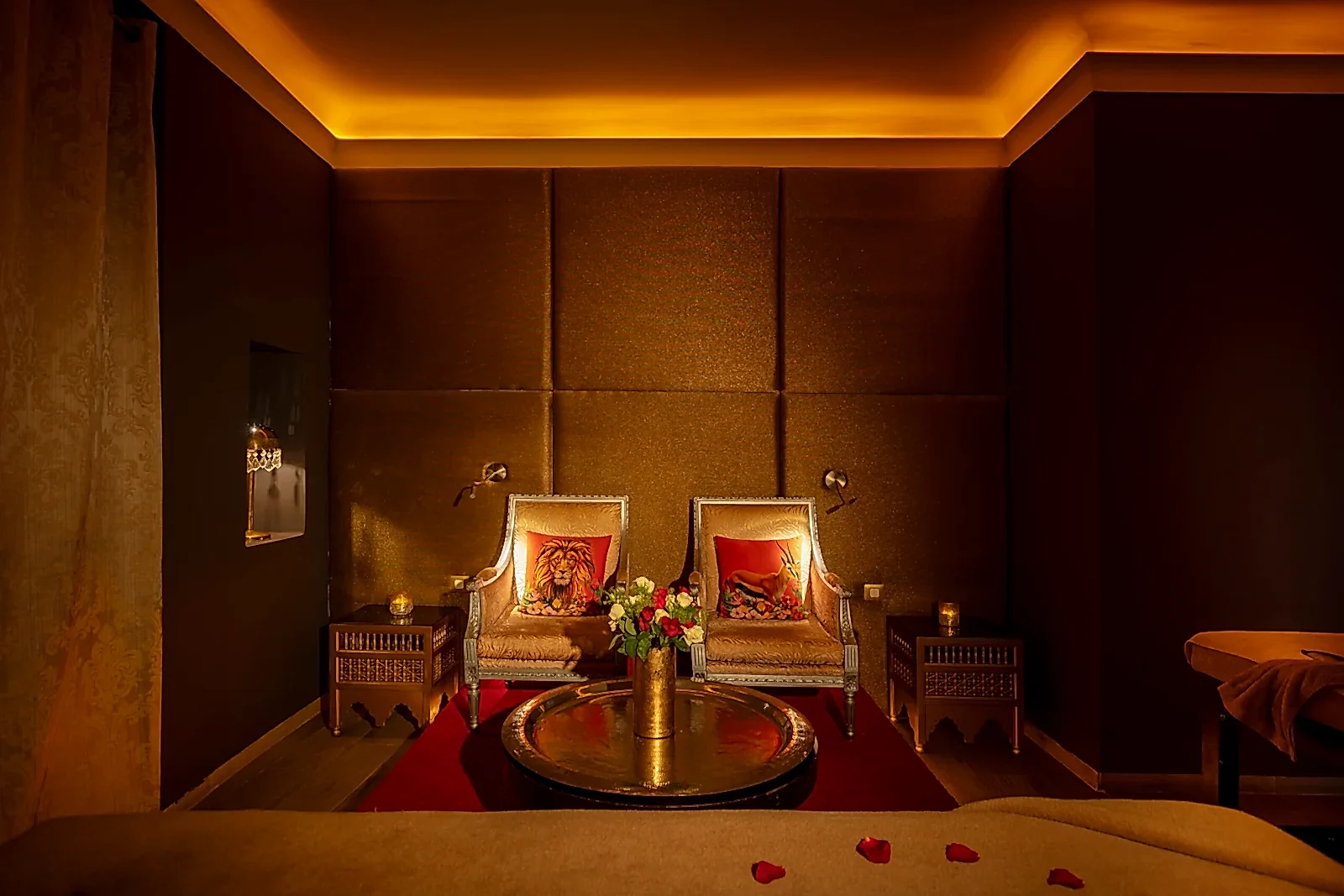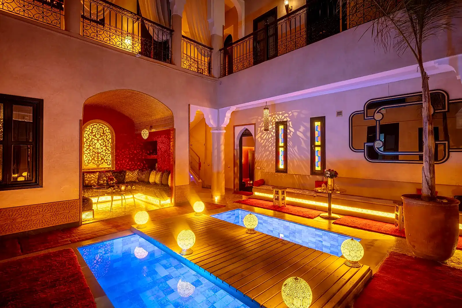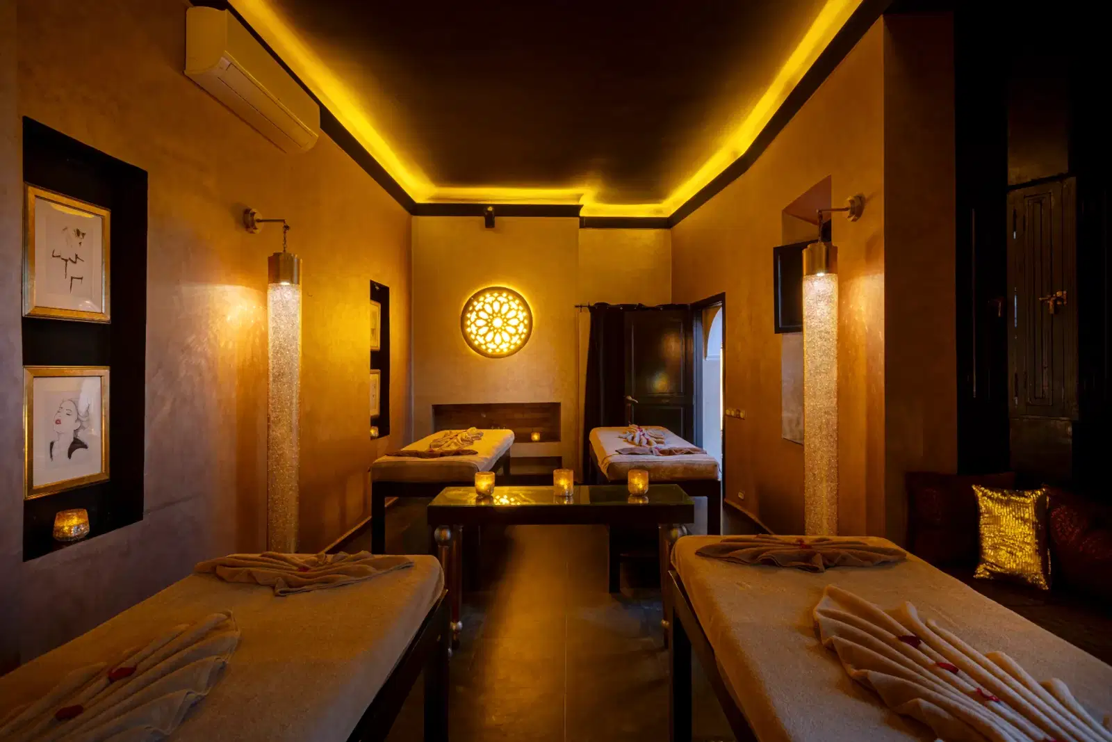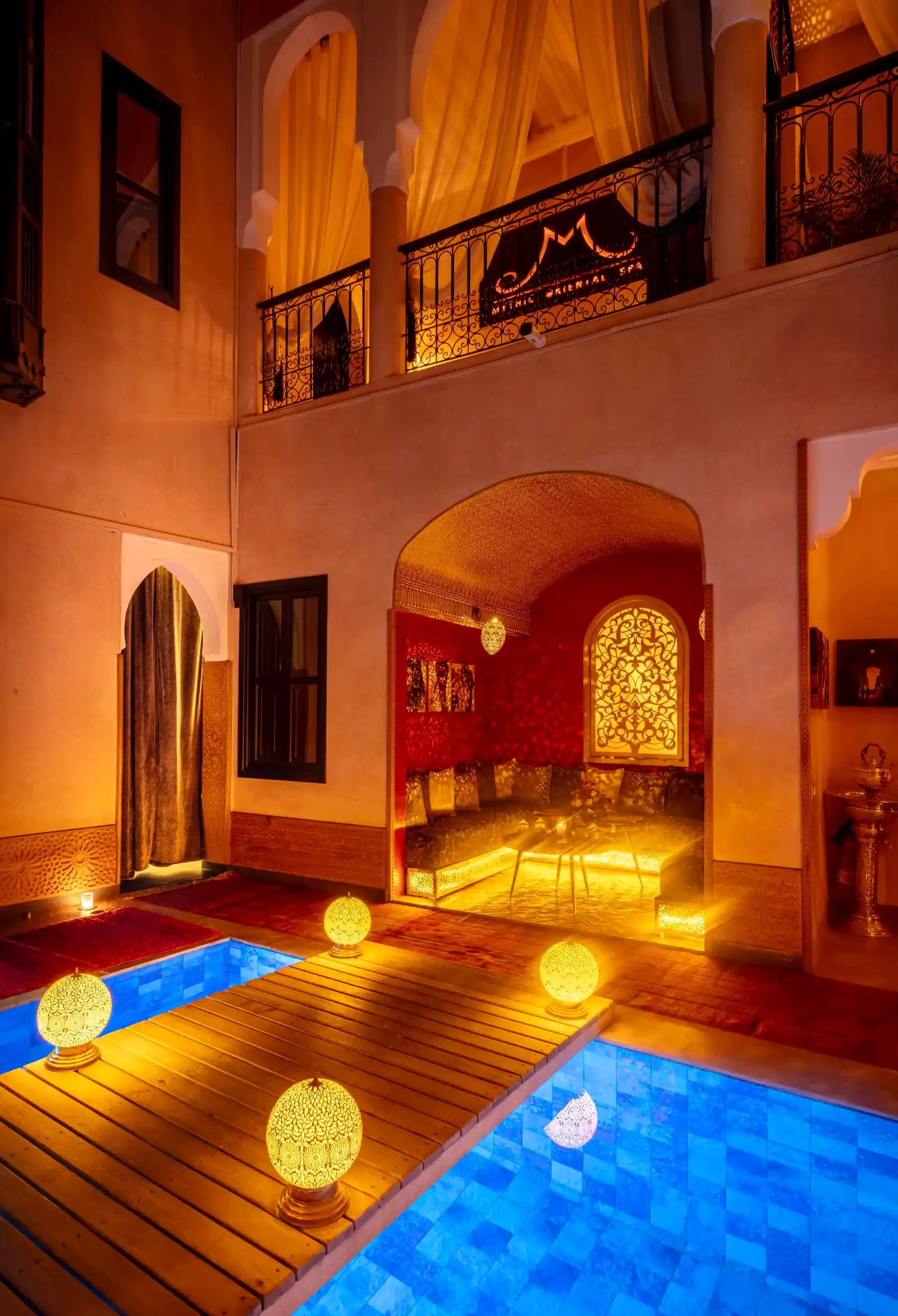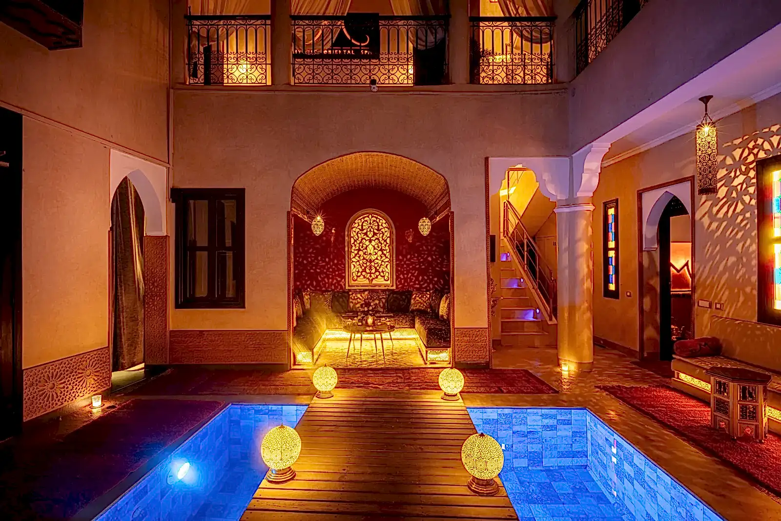 A quelques pas dans un « Derb«  lumineux et vous dĂ©couvrez la porte du « Riad« . Le loquet pour ouvrir la porte est la clĂ© pour accĂ©der Ă  la culture orientale ancestrale du bien-ĂȘtre. Un sourire vous accueille et vous propose de franchir le seuil de la maison soigneusement restaurĂ©e